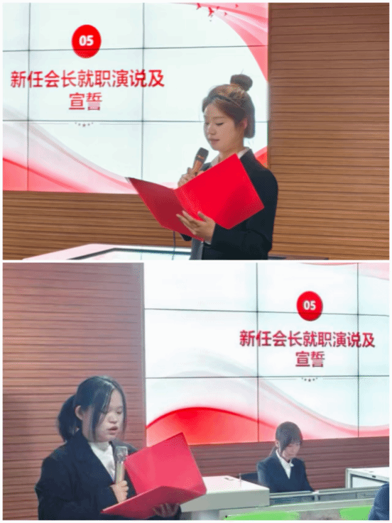 大会第三项议程,校园消防志愿者协会第十五届会长秦暄和校园安全志愿者协会第八届会长王悦分别进行了就职演说及工作展望。两位会长均对大家的信任与支持表达了诚挚的感谢,并承诺将肩负起会长职责,主动接受各方监督。他们立足协会发展现状,明确了未来工作规划,表示将以实际行动担当使命、以创新思维谋求发展,引领协会续写护校新篇章。在今后的工作中,协会成员们将助力校园安全管理处更好地服务全校师生。
