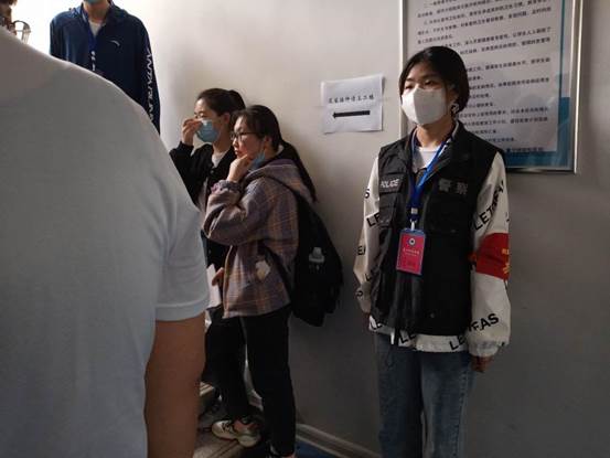 本次新冠疫苗接种工作分批次有序开展,避免人流量过大造成的接种效率低等问题。首先,监督管理人员为安全志愿者们讲解具体的人员安排,工作内容及注意事项,确保相关人员熟练掌握接种流程,出现异常反应可及时识别、快速处理。安全志愿者们很快便投入到了工作当中,其分工协作,控制进出医务室进出人数,维持现场秩序并引导接种者顺利完成疫苗接种工作。最后,提醒并保证每位被接种人员均在留观室观察30分钟以上后离开。