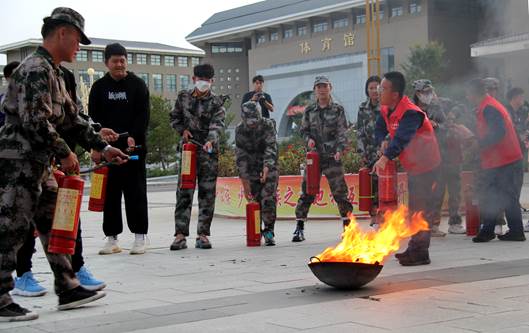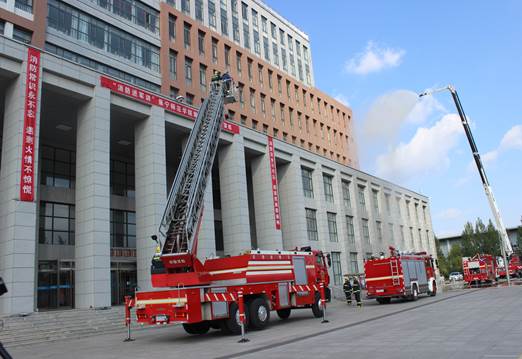 活动现场按照演练方案进行了“消防、地震灾害逃生演练”,观摩消防队特种灭火车辆操作和救援演习、抢险救援器材应用展示、灭火器实操等活动。