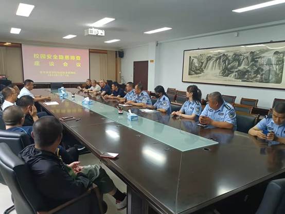 校园安全管理处与虎山派出所、政保大队联合开展校园意识形态研讨、安全隐患排查座谈会