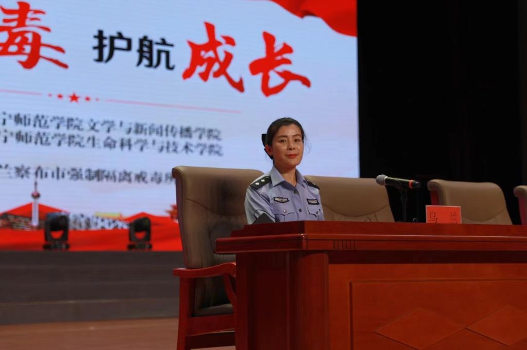 为进一步加强学校毒品预防教育工作,增强广大学生的禁毒意识及自觉抵制毒品侵袭的能力,做到识毒品、远离毒品,树立“健康人生,绿色无毒”的理念;6月20日下午,由校园管理处主办,文学与新闻传播学院、生命科学与技术学院承办的“青春无毒,护航成长”禁毒宣讲在逸夫楼举行,活动邀请乌兰察布市强制隔离戒毒所等相关单位负责人出席,泉山校区1000多名师生参加。
