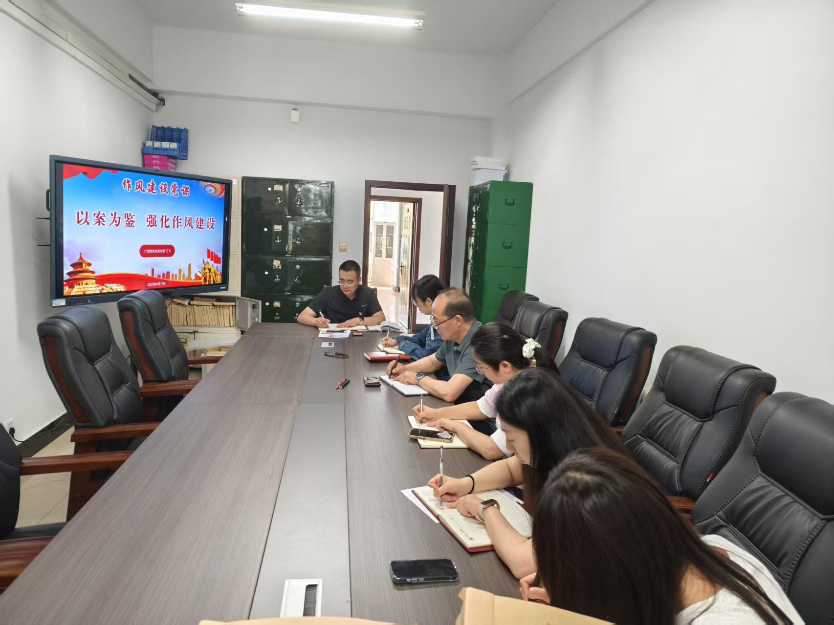 为深入学习习近平总书记关于加强党的作风建设重要论述和指示精神,引导支部全体党员深入贯彻中央八项规定精神,2025年6月17日下午14点,计划财务处党支部在行政楼204会议室开展“以案为鉴 强化作风建设”支部书记讲党课。全体党员参加会议,副处长惠历宁列席。