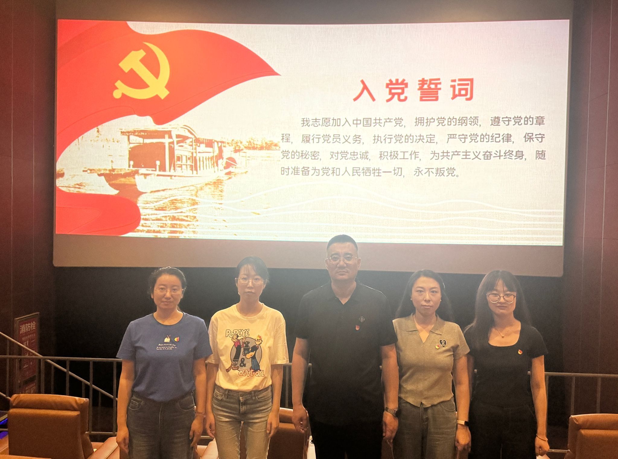活动中,全体党员进入影视厅,共同观看主题影片《一生交给党》。该影片以真实的历史事件和人物周逸群为原型,生动展现了共产党人面对艰难险阻时的坚定信念。通过观看影片,让党员们深刻领悟党的光辉历史和优良传统,从革命先辈的事迹中汲取奋进力量。