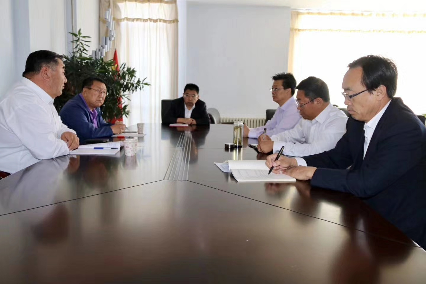 9月5日,内蒙古察哈尔文化研究会会长潘小平,副会长、首席专家钢土牧尔教授在2026世界杯官方合作网站拜会学校党委书记刘前贵、校长朱玉东,并座谈交流。