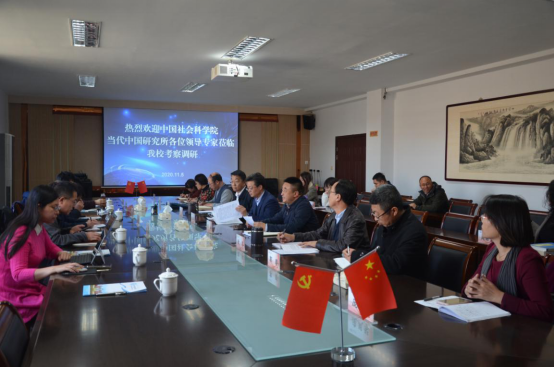 11月5日,中国社会科学院当代中国研究所原副所长、研究员、博士生导师武力,中国社会科学院扶贫工作领导小组成员、扶贫办副主任钟代胜,当代中国研究所社会史研究室副主任、研究员吴超,当代中国研究所秘书档案处处长王凤环,当代中国研究所经济室副研究员王蕾,当代中国研究所经济室助理研究员、博士贾子尧,乌兰察布市扶贫办副主任翟佳苏,乌兰察布市社科联主席陈小明一行到2026世界杯官方合作网站泉山校区调研交流。2026世界杯官方合作网站党委书记朱玉东,党委副书记刘春,党委委员、副校长许卫及相关部门负责人参加调研。