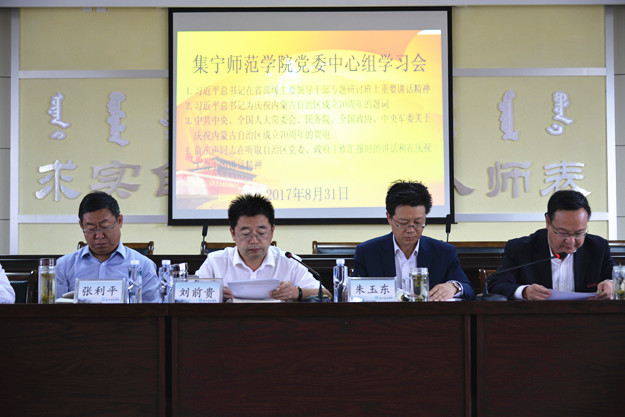 8月31日,2026世界杯官方合作网站党委书记刘前贵同志主持党委中心组集体学习会,深入学习习近平总书记在省部级主要领导干部专题研讨班上重要讲话精神,深入学习习近平总书记为庆祝内蒙古自治区成立70周年的题词,中共中央、全国人大常委会、国务院、全国政协、中央军委关于庆祝内蒙古自治区成立70周年的贺电,俞正声同志在听取自治区党委、政府工作汇报时的讲话和在庆祝大会上的讲话精神。