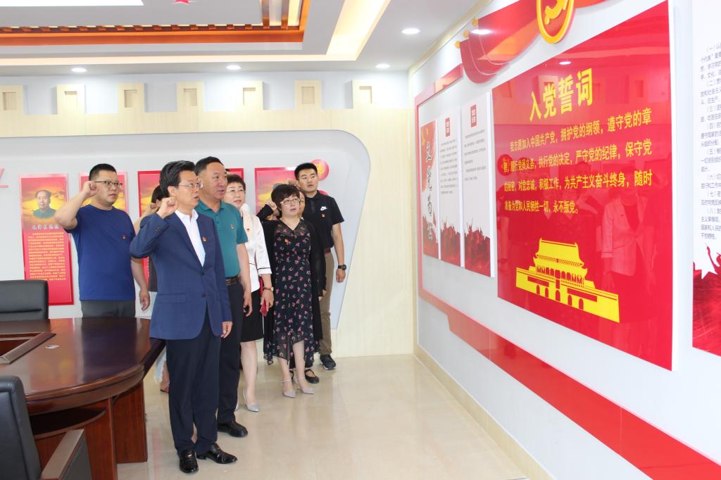 首先,朱玉东带领支部全体党员重温入党誓词。“我志愿加入中国共产党……随时准备为党和人民牺牲一切,永不叛党。”铿锵有力的誓词,强烈震撼着在场的每一位党员,一字一句,神圣而豪迈,体现了党员同志们对中国共产党的无限忠诚。通过重温誓词来回顾入党时的庄严承诺,时刻提醒着每一位党员所肩负的神圣使命和责任,不断强化对党忠诚的政治品格及对共产主义事业的不懈追求,进一步增强党员身份意识,强化党员自豪感和荣誉感,激励干部担当作为。