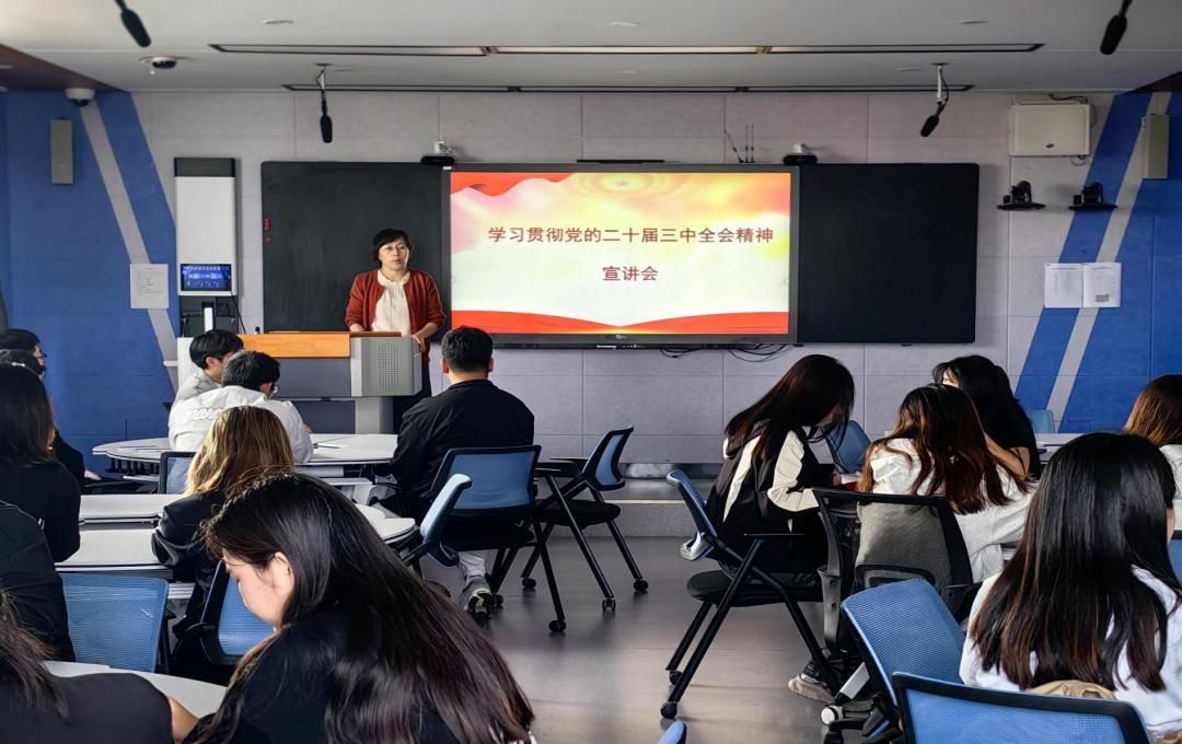 会上,党总支书记刘晓霞深刻认识和把握党的二十届三中全会的重大意义,深入学习领会习近平总书记在党的二十届三中全会上的重要讲话精神,深刻领会进一步全面深化改革的指导思想、总目标和重大原则,全面准确理解《中共中央关于进一步全面深化改革、推进中国式现代化的决定》提出的重大举措,认真贯彻落实全会关于深化教育综合改革的新部署和新要求,全力以赴抓好全会精神贯彻落实等方面作了系统宣讲和深入阐释。