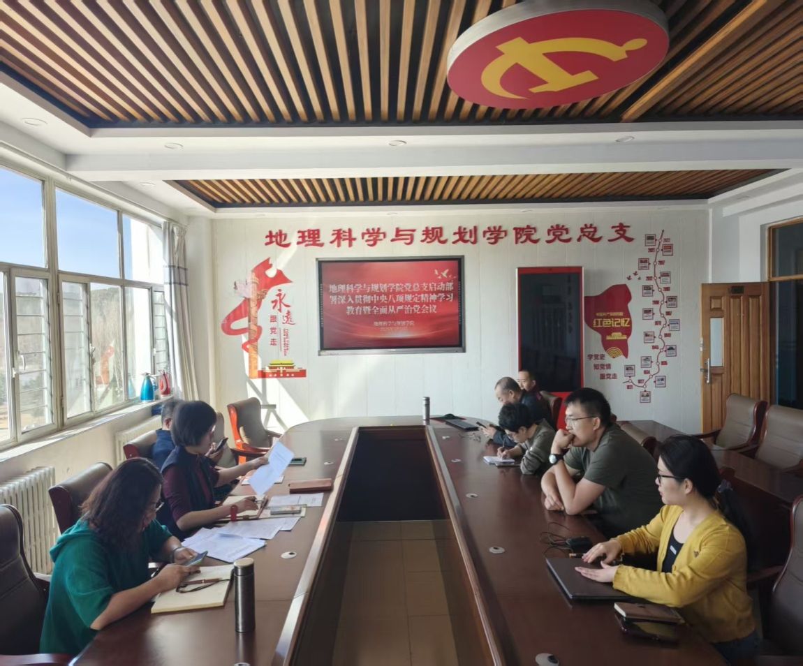 3月24日上午,地理科学与规划学院党总支在教学主楼603会议室召开会议,部署深入贯彻中央八项规定精神学习教育及全面从严治党工作。党总支书记刘晓霞主持会议,党总支委员,各党支部书记、副书记参加会议。