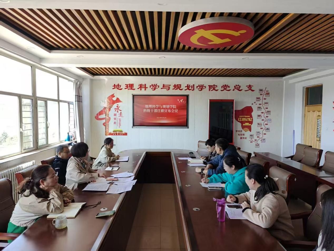 5月6日,地理科学与规划学院在教学主楼603会议室召开科级干部任职宣布会,学院党总支委员、各科室负责人、新任职干部等参加会议。会议由党总支书记刘晓霞主持。