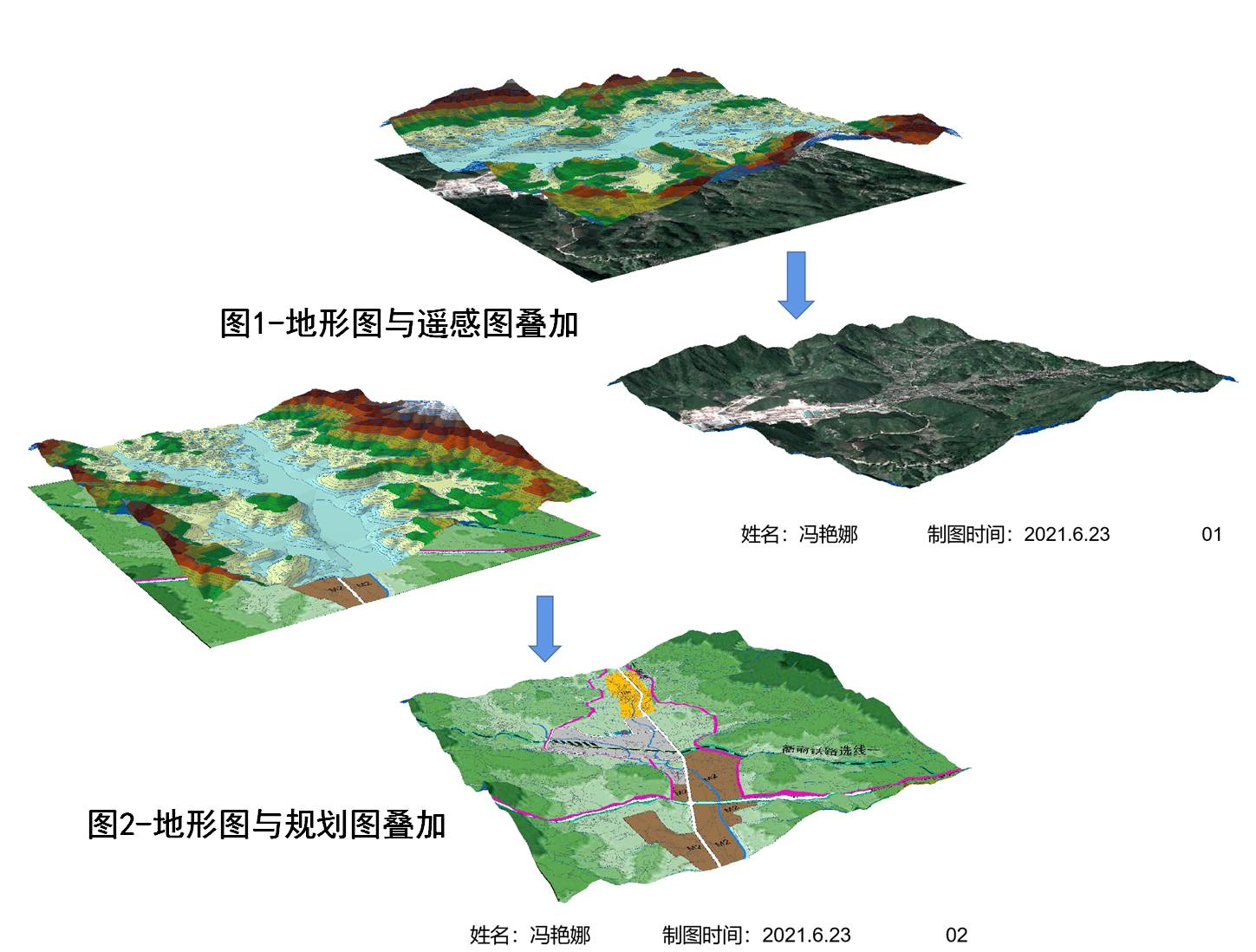第一章《土地使用现状图》我们学习了基础的创建地图文档、创建GIS数据、操作图层、制作完整的图纸,通过本实验的学习,同学们了解了GIS的操作步骤,后来也在多个章节反复使用。第二章《现状容积率统计》中我们学习了建筑和地块的相交叠加、分地块统计和地块容积率的计算、地块容积率的可视化表达。使同学们掌握了现状容积率的快速统计方法。第三章《城市用地适宜性评价》中我们学会了栅格叠加运算与划分适宜性等级。第四章学习了《遥感图、规划图与原始地表面的叠加》。第五章学习《三维场景模拟》过程中,我们掌握了创建地表面与地表面间的相互转换。在接下来的章节中我们陆续学习了制作3D影像图、规划图与创建二维半建筑和场景。