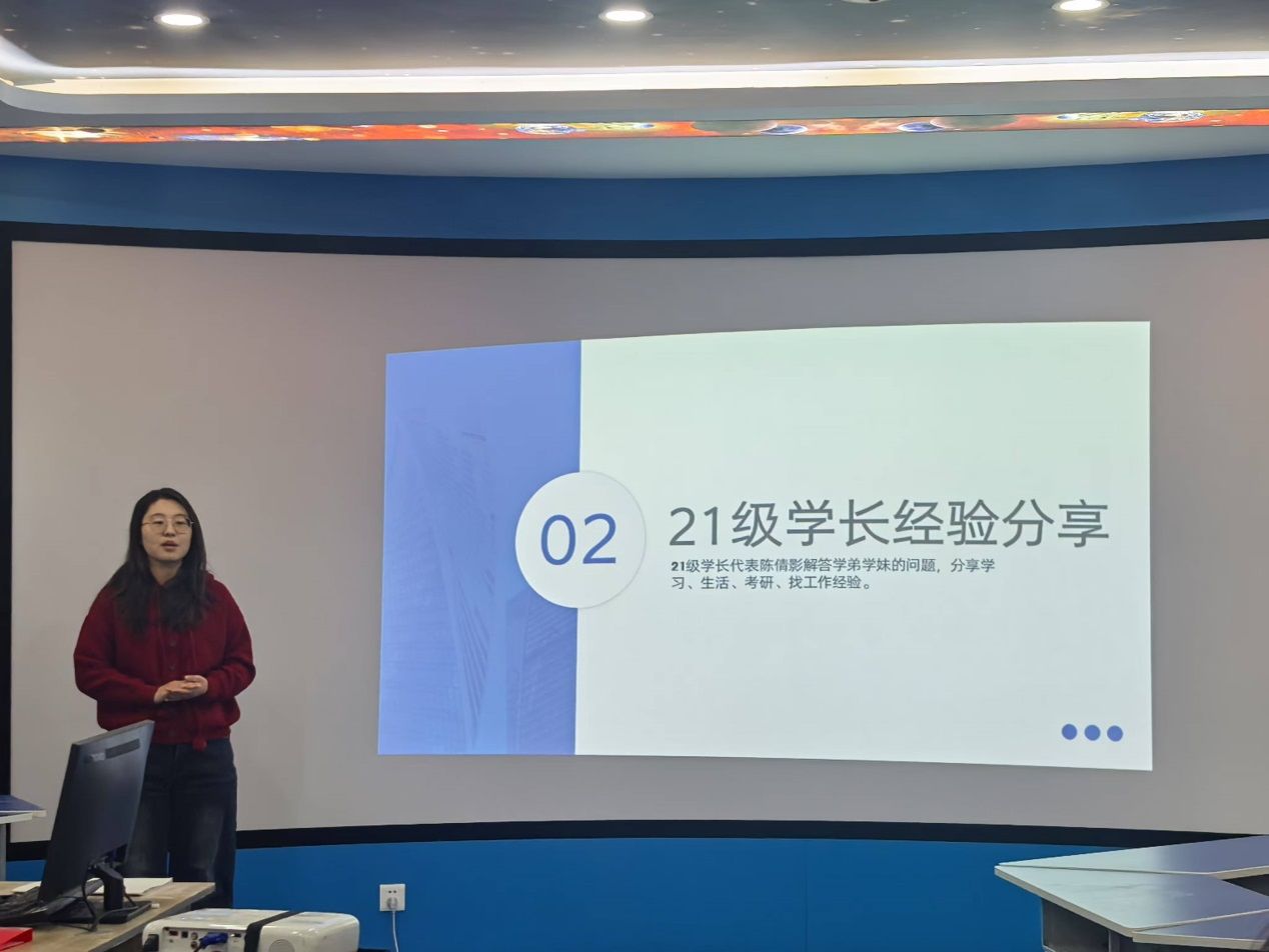 活动伊始,低年级的组员们依次分享着自己在学习、工作与生活中的所思所悟,畅谈学业展望与就业规划。他们的话语或青涩稚嫩,或沉稳笃定,都饱含着对未来的无限憧憬。随后,2021级学姐陈倩影耐心解答学弟学妹们心中的困惑,将自己在学习、生活、考研以及求职路上的宝贵经验倾囊相授。那些曾经走过的弯路、收获的成功,都化作一句句真挚的建议,为后来者点亮前行的路灯。