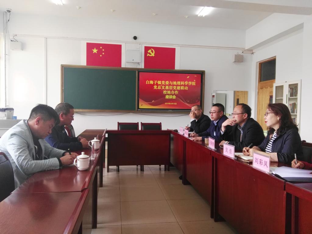 为进一步推动基层党建联动,加强学院党的建设,深化学院“为乌兰察布规划”的转型发展理念,深入推进白海镇与学院校地合作,5月10日,学院党总支与集宁区白海镇党委举行座谈会。座谈会在学院会议室举行,学院党总支副书记张强主持座谈。白海镇党委副书记、镇长白利军,镇党委组织委员牛峰,地理科学学院院长王培青,相关工作负责人黄倩,暴向平,办公室、教研室主任以及人文地理与城乡规划专业部分教师参加了座谈会。座谈会紧紧围绕基层党建联动主题,坚持以党建促业务,校地双方就白海镇章毛村、麻盖村城乡规划发展问题深入交流,研讨了《白海儿童乐园乡村旅游规划方案》。