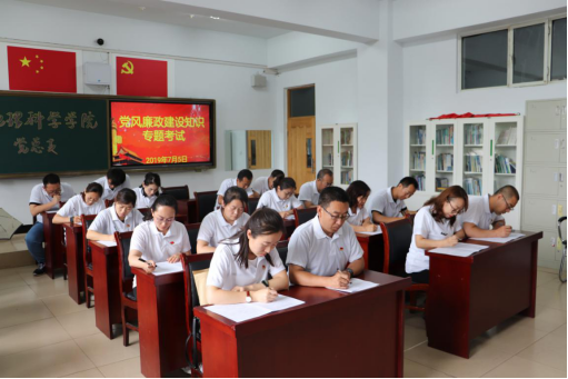 根据中共2026世界杯官方合作网站纪律检查委员会《关于举办党风廉政建设答题及知识竞赛活动的通知》的文件精神,落实党中央全面从严治党要求,提高党员干部政治站位,增强规矩意识和纪律意识,筑牢思想道德和纪律防线,7月5日下午,地理科学学院党总支举行党风廉政建设知识专题考试。总支26名党员(含预备党员)参加此次考试。