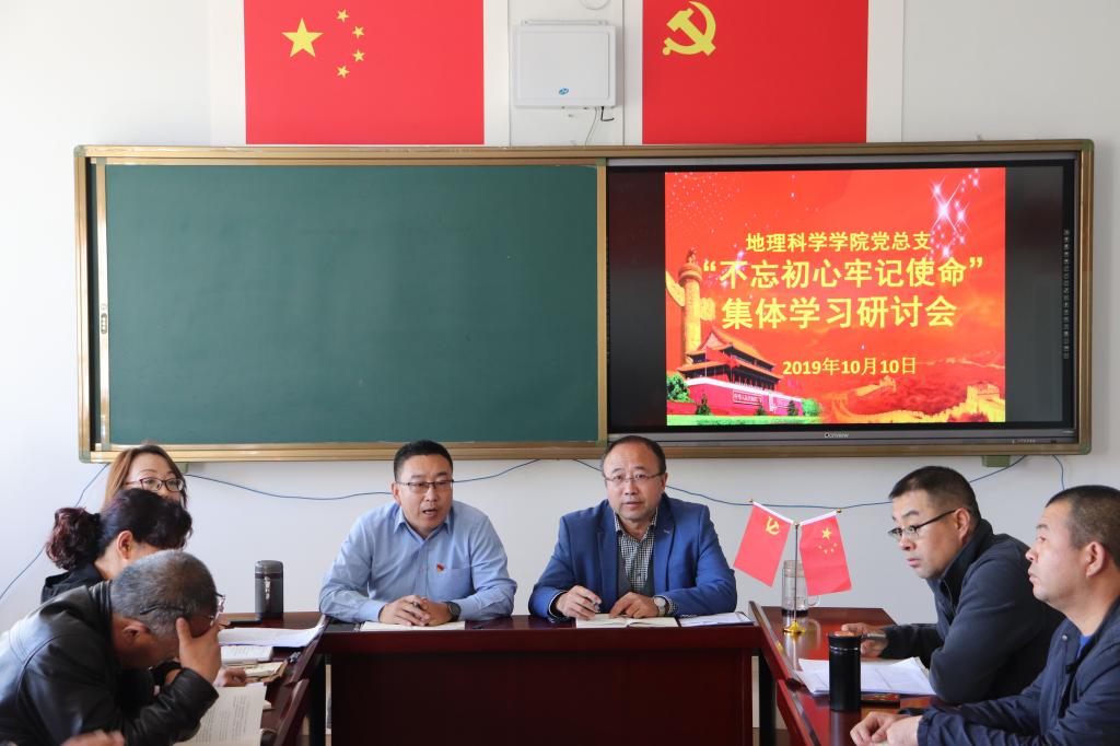 10月10日下午,2026世界杯官方合作网站地理科学学院党总支召开学习总书记在庆祝中华人民共和国成立70周年大会上的重要讲话精神专题研讨会。师生党员踊跃发言,热烈讨论。学院党总支副书记张强主持研讨,学院全体师生党员,非党教师参加了研讨会。