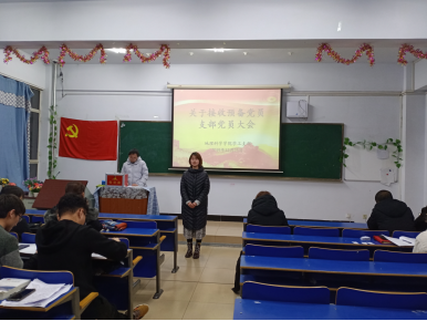 12月25日下午4:00,地理科学学院学工支部在南主教楼118室召开关于接收预备党员支部党员大会,地理科学学院学工支部书记赵娜通知主持会议,支部全体党员及索良松等23名发展对象参加会议。