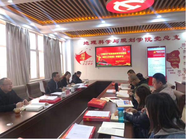 5月6日,地理科学与规划学院组织召开学习《中国共产党普通高等学校基层组织工作条例》研讨会。会议由地理科学与规划学院党总支副书记张强主持。地理科学与规划学院全体党员参加。