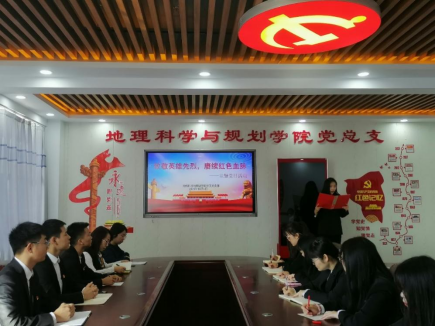 为迎接新中国成立72周年,弘扬以爱国主义为核心的民族精神,进一步增强党支部成员不忘初心、实干担当、奋发有为的自觉性和主动性,缅怀革命先烈,传承优良品质,10月1日,地理科学与规划学院学工党支部在主教楼603举办“致敬英雄先烈,赓续红色血脉”主题党日活动。
