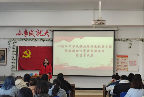 党总支副书记黄倩带领学生学习领会习近平总书记在中央民族工作会议上的重要讲话精神,让学生深刻理解核心要义和精神实质,切实把思想和行动统一到习近平总书记重要讲话精神和党中央决策部署上来。
