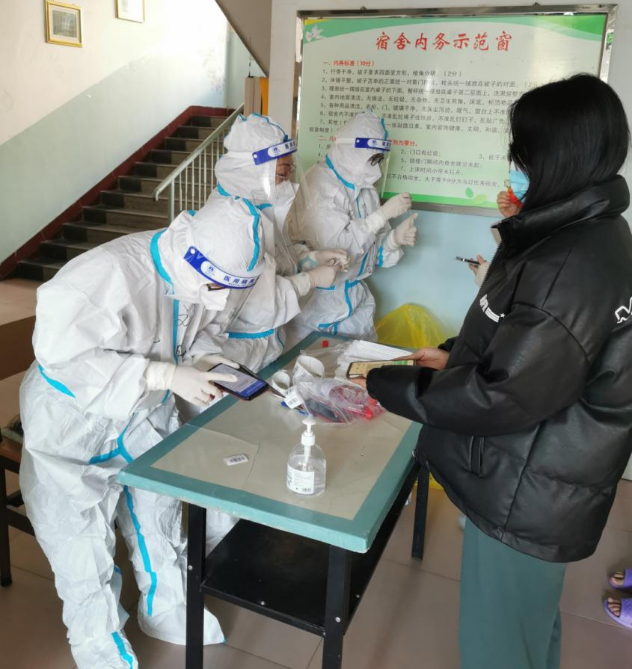 10月3日,校党委向全校教职工发出组建教师志愿队参与核酸检测采样工作的号召。地理科学与规划学院积极响应,主动报名,迅速形成一支由8名教职工组成的核酸检测采样志愿服务队伍。10月9日早晨,教师志愿者不畏严寒,穿上防护服,变身可爱“大白”,走进学生公寓6号楼,维持核酸检测现场秩序,劝导学生保持安全距离,认真进行核酸检测等。虽然他们不是专业人士,但大家迅速转换角色,尽职尽责做好本职工作,丝毫不敢懈怠,用实际行动诠释师者先行、师者担当的精神。脱下防护服,他们变身“主播”,马上又投入到在线教学工作中。课堂上,他们向学生“言传”;抗疫一线,他们在“身教”。教师志愿者们一边坚守“云讲台”,一边集结待命,冲锋抗疫一线,以实际行动展现了新时代教育者风采。