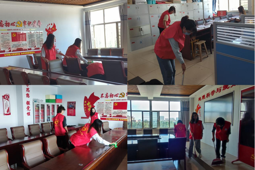 地理科学与规划学院学生党支部携手学生会、团总支、青年志愿者协会共同清洁602、603等8个办公室的环境卫生。活动中,志愿者们身穿红色马甲,分工协作、相互配合,充分发扬不怕脏、不怕苦的精神,开展志愿服务活动。大家个个奋力争先,对地面、窗台、桌面等进行彻底的打扫和清理,确保做到整治一处,清洁一处,靓丽一处,使办公室环境更加干净、整洁。