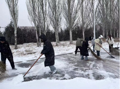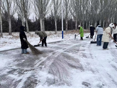 活动中,同学们热情高涨,不辞辛劳,通力协作,默契配合,充分发挥吃苦耐劳精神,手拿铁锹、扫帚等工具,有组织、有秩序的进行扫积雪、铲冰层工作,经过近一个小时的努力,道上的积雪迅速清扫到位,道路变得干净通畅,有效消除师生出行安全隐患。