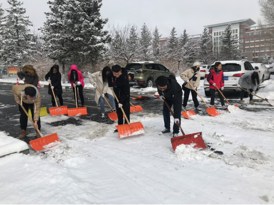 活动中,同学们充分发挥了“不怕脏、不怕累”的精神,干劲儿十足,用冰冷的铁锹对阵厚厚的积雪,尽管天气寒冷,但同学们分工明确、默契配合、互相帮助、众志成城,对行政楼前的积雪进行了清扫,劳动的热情、团结的力量让这个寒冷的天气变得格外温暖。