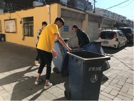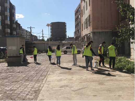活动第三项,为了让同学们树立环保意识,深刻体会劳动的意义,用自己的行动践行社会主义核心价值观,地理科学学院青年志愿者们协助集宁区桥东街道东民建社区打扫卫生。