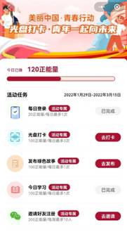 团员青年每日参与学习习近平生态文明思想绿色故事,开展光盘打卡,每天完成1次光盘打卡,获得100正能量。通过发布绿色故事积攒能量,同学们将获得的正能量将按比例兑换成善款,用于“书海工程”项目,以图书捐赠的方式支持中西部青少年教育。