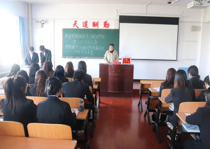 10月6日,地理科学与规划学院组织召开第五次团(学)代会,学院党总支书记刘晓霞、副院长暴向平、党总支副书记黄倩、团总支书记赵娜、学团办公室副主任邢晓彬以及25名学生代表参加会议。