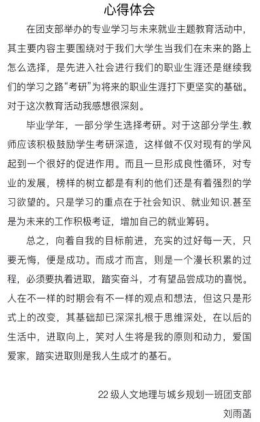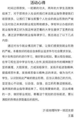 活动期间,各团支部书记组织团员青年开展专业学习与未来就业主题教育活动,同学们围绕专业知识、行业发展趋势,就业前景,撰写心得体会,并且积极分享自己的本次活动收获。