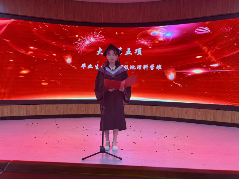 毕业生代表2019级人文地理与城乡规划班于洋同学发言