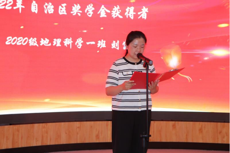 团学办公室副主任赵娜宣读获得乌兰夫奖学金名单、自治区奖学金、自治区级“三好学生、优秀学生干部、优秀毕业生”名单。
