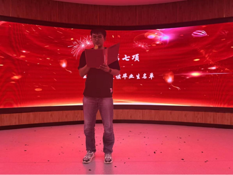 党总支副书记黄倩宣读2019级考研上线名单、考取教师编制、考取选调生、考取西部计划学生名单。