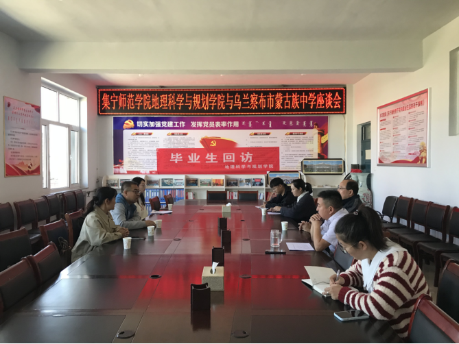 为了进一步了解用人单位对我院师范专业毕业生满意度及全面掌握师范专业毕业生就业后的专业发展状况,5月21日上午,地理科学与规划学院副院长暴向平、刘彩凤、班主任刘晓靓、专职辅导员李瑞英一行4人赴乌兰察布市蒙古族中学对2019届地理科学专业毕业生开展就业回访工作。蒙古族中学副校长好斯白音、教导处主任格日勒图、地理教研组组长郭宇及毕业生宋雪辉、崔凯参与此次回访座谈会。