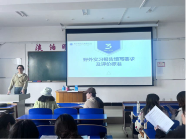 陈玮常老师介绍了本次实习的目的,对本次实习路线及其规划进行详细说明,安排学生领取野外实习相关仪器。