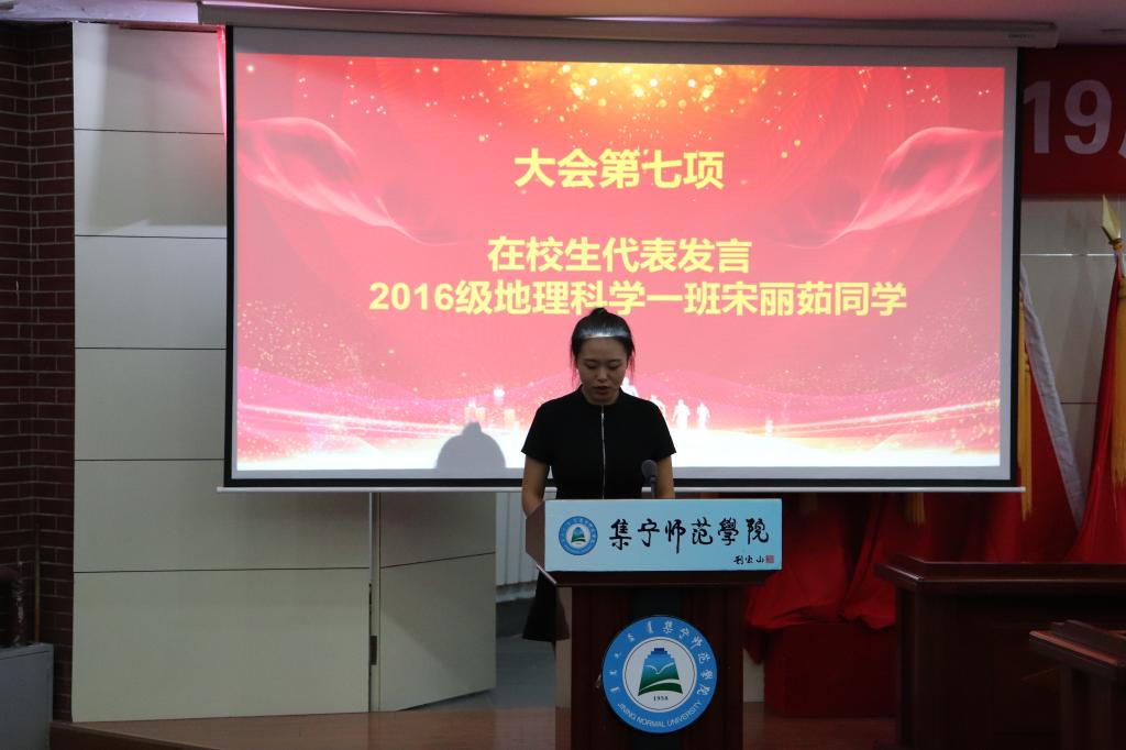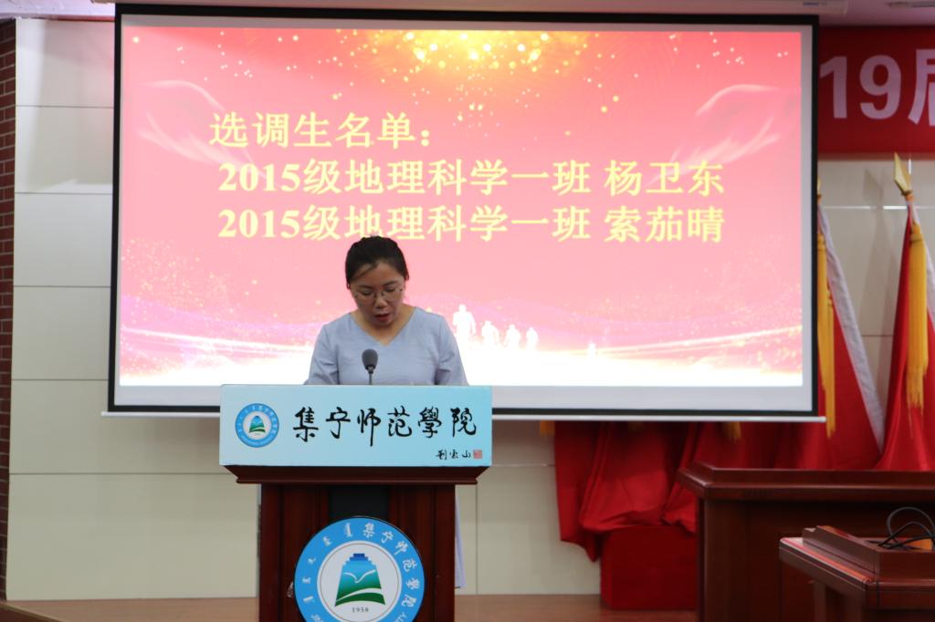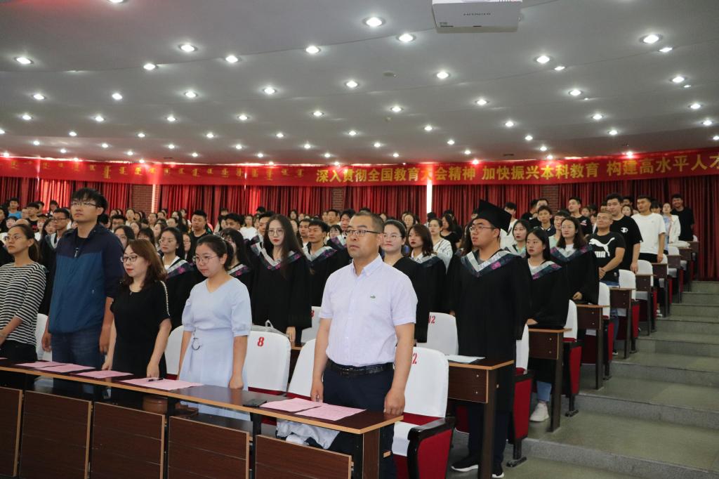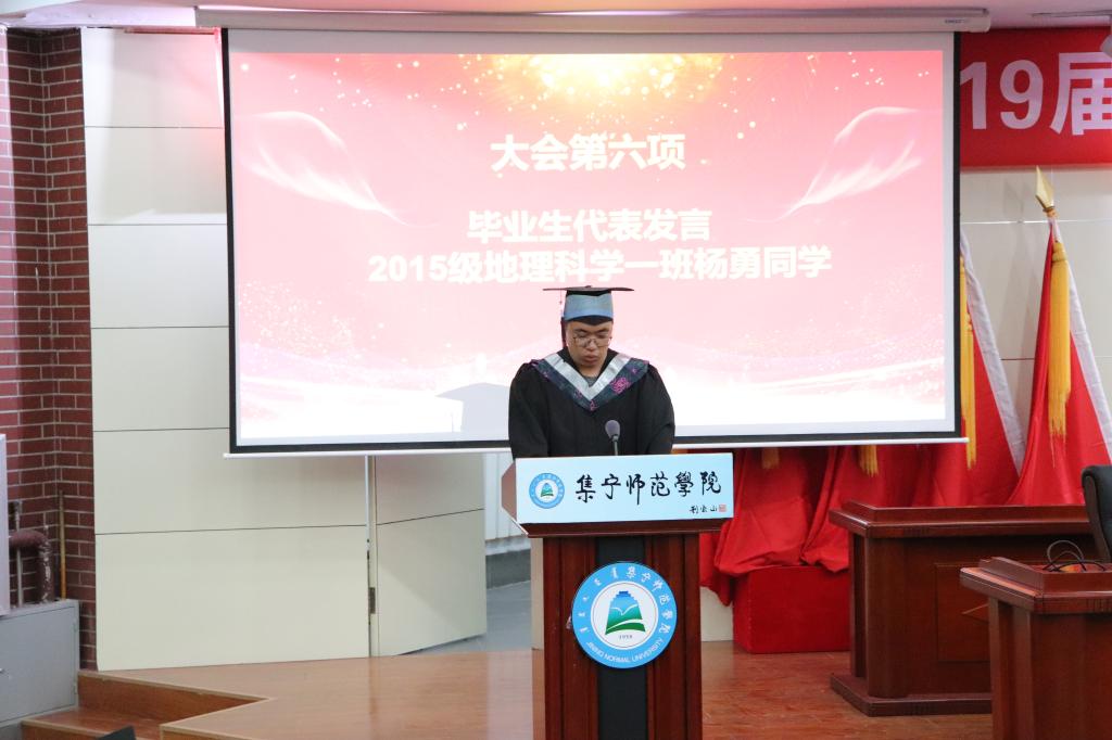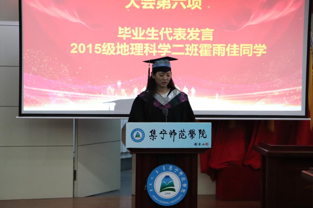 毕业典礼在激昂的国歌中拉开了序幕。首先由暴向平老师宣读2019届本科毕业生名单,赵娜老师宣读了2019届毕业生考研上线名单、考取教师名单、考取内蒙古选调生名单、考取西部计划学生名单,黄倩老师宣读了2019年获得自治区级“三好学生、优秀学生干部、优秀毕业生”名单。
