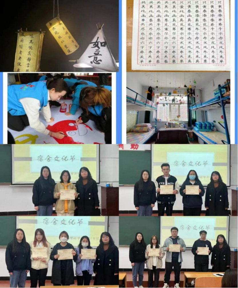 建设文明宿舍,提升宿舍品质。在“徜徉清雅之风 共建文明宿舍”主题活动中,同学们秉持美观大方、清新高雅的要求精心设计,巧妙布置,打造出了干净整洁的寝室风貌。最终评选出六号楼205宿舍获得一等奖“文明标兵”宿舍、六号楼313宿舍获得二等奖“优良学风”宿舍、十号楼206宿舍获得二等奖“最美”宿舍、六号楼203宿舍获得三等奖“温馨”宿舍、三号楼316宿舍获得三等奖“团结友爱”宿舍、三号楼311宿舍获得三等奖“安全文明示范”宿舍。