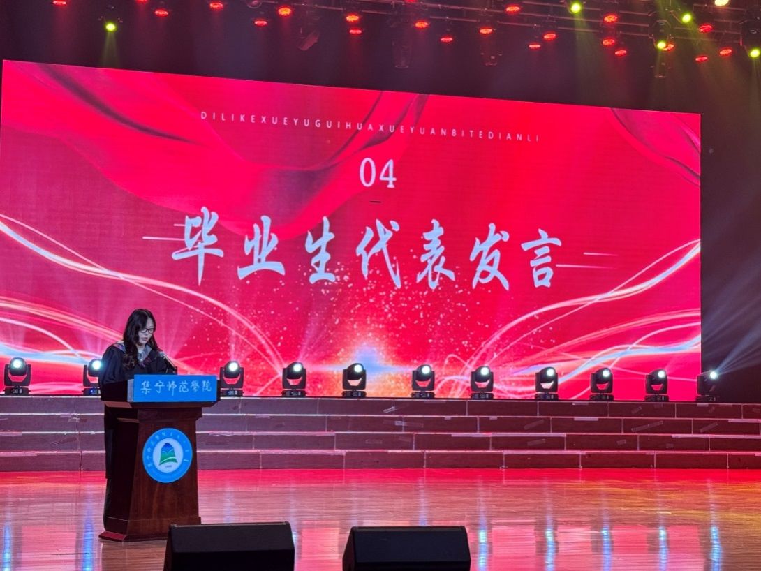 2025届毕业生代表包馨蕊深情回首四载大学岁月,感谢学校、学院、老师们的培育和指导,祝福全体毕业生带着地理人的热忱奔赴新途。同时,也期盼学弟学妹们在校园沃土中厚植理想,锤炼专业本领,续写更多经纬天地的精彩画卷。