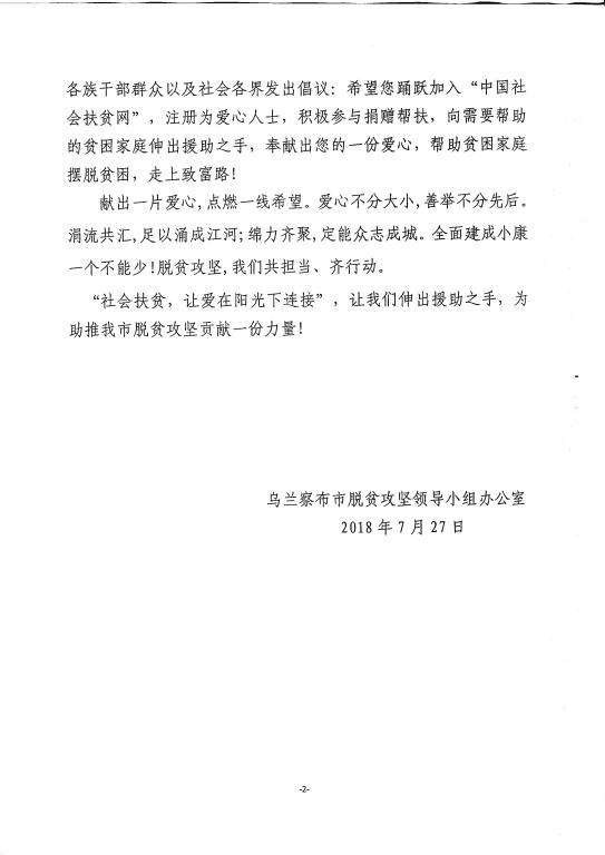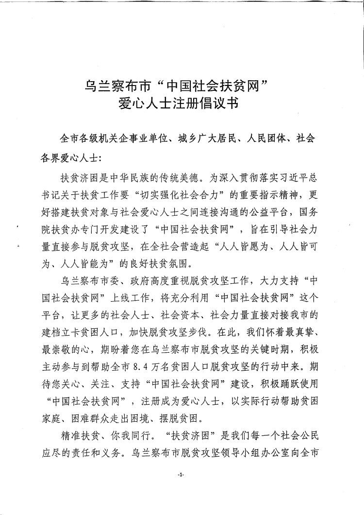 2、《乌兰察布市“中国社会扶贫网”爱心人士注册倡议书》