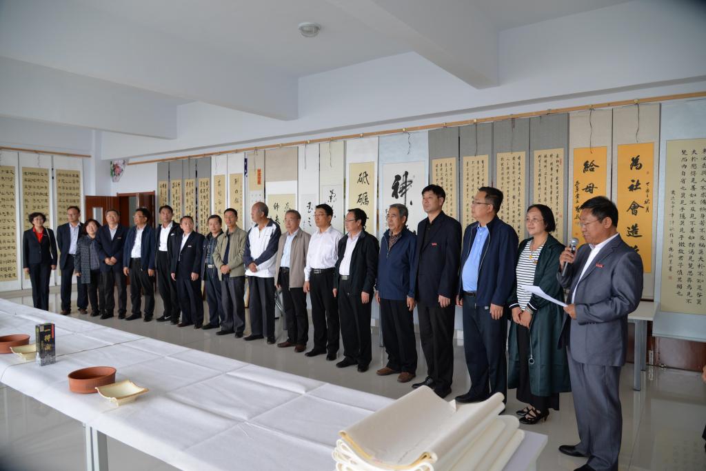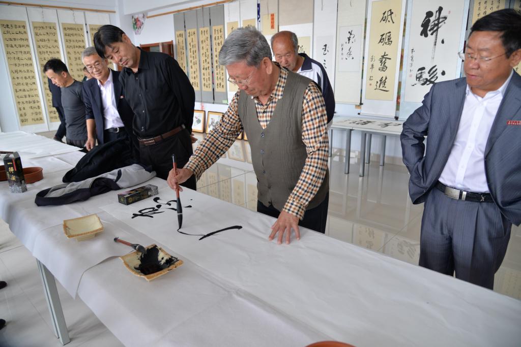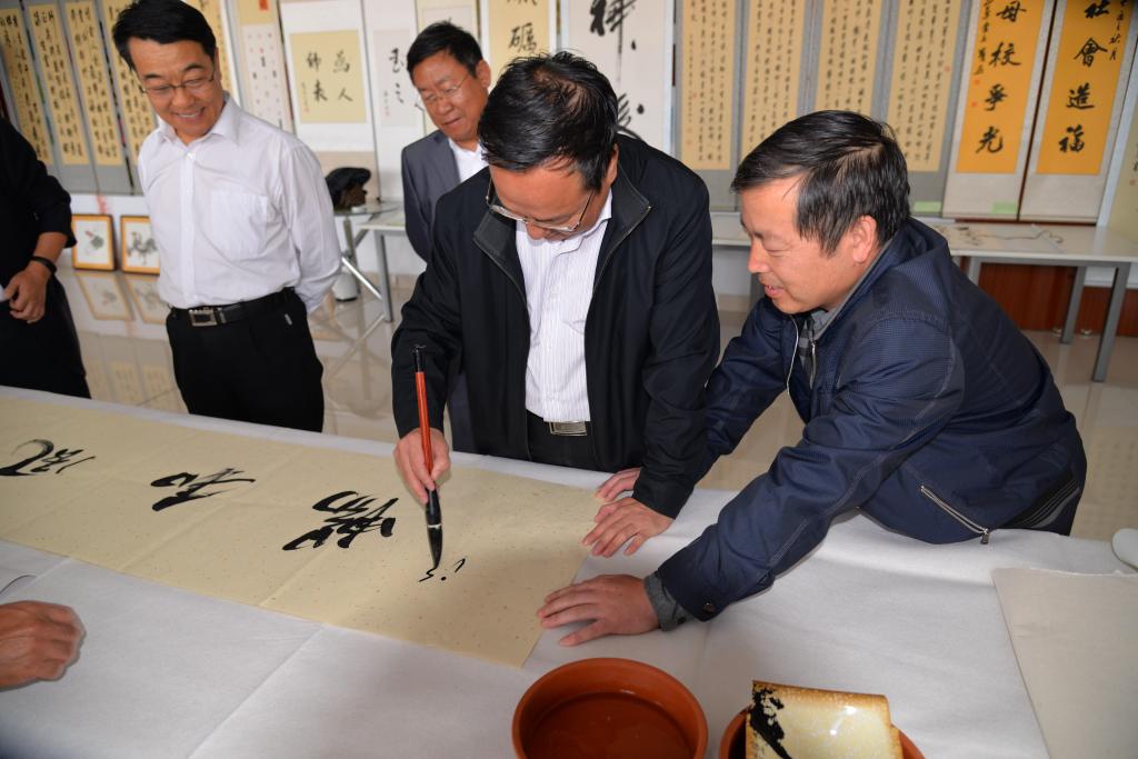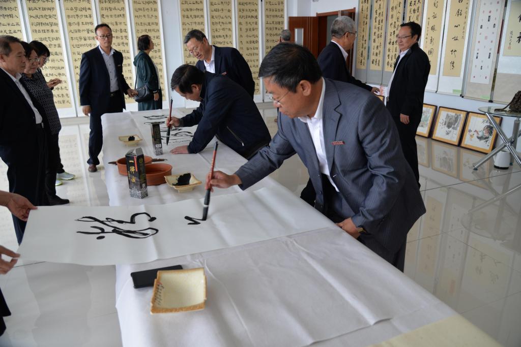 开展仪式结束后,大家一同观看了展览。一些领导、老师、校友还即兴挥毫泼墨,有的书写,有的作画。
