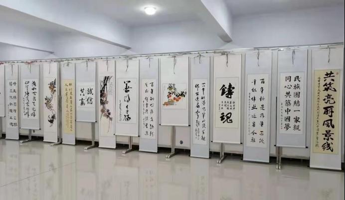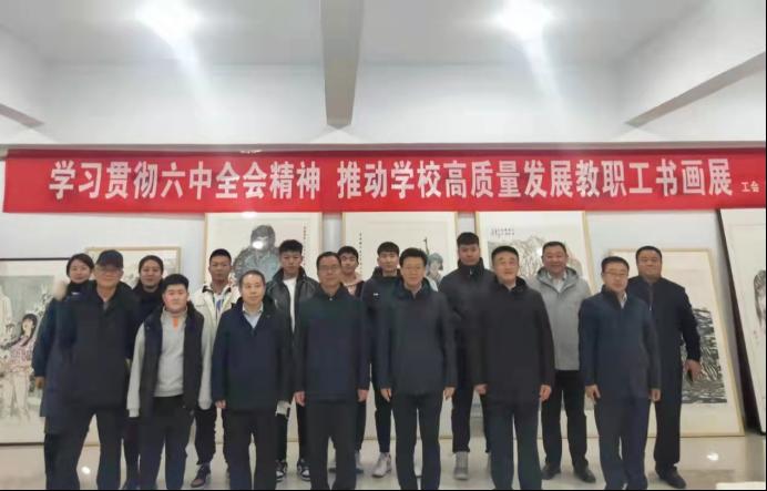 在建党百年之际,为了深入学习贯彻党的十九届六中全会精神,传承红色精神,铸牢中华民共同体意识,弘扬中华优秀传统文化,推进学校美育教育,加强校园文化建设,深化文明校园创建,推动学校“十四五”高质量发展,凝心聚力,鼓舞士气,12月9日下午,由校工会主办、美术学院和书画学会承办,在泉山校区逸夫楼十楼教工之家成功举办了庆祝建党百年主题教职工书画展览。