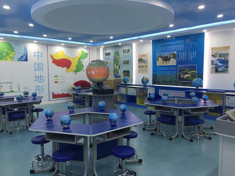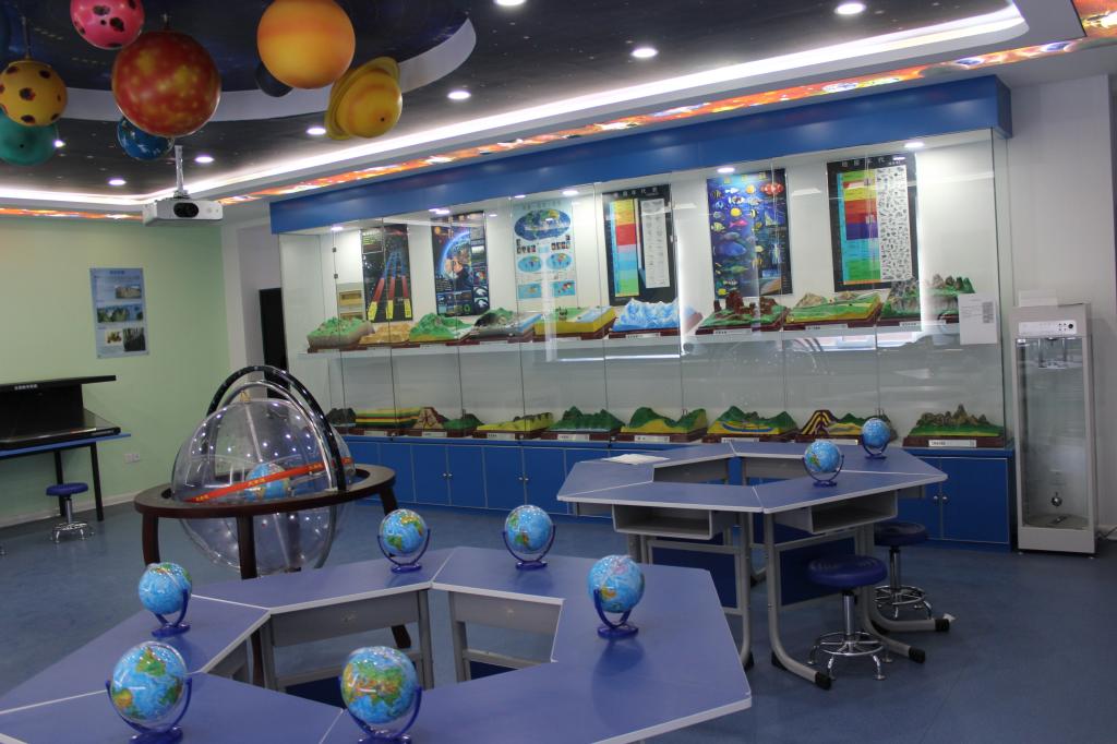 地理教学论实验室(数字化地理实验室二)始建于2017年,主要仪器设备有:大型地平坐标星球仪、时区换算演示仪、太阳系行星吊装模型、弧幕视教学习系统等22台(套),总价值29万元,主要承担:地球概论、地质学、地貌学、地理教学设计等课程的实习实训。