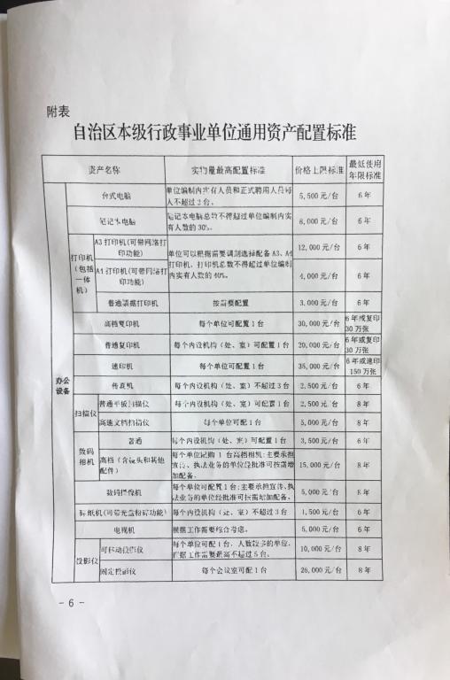 内蒙古自治区本级行政事业单位通用资产配置标准