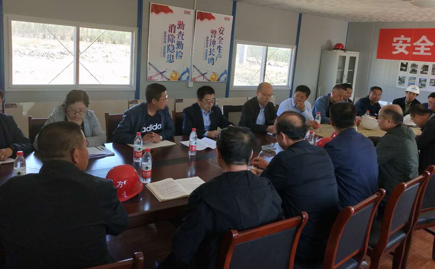 刘前贵详细查看了两项工程正在施工中的各个楼层,针对检查中发现的问题和建筑布局以及投入使用等方面进行了现场指导,提供了合理化建议和意见。并在工地现场召开工程项目推进会。