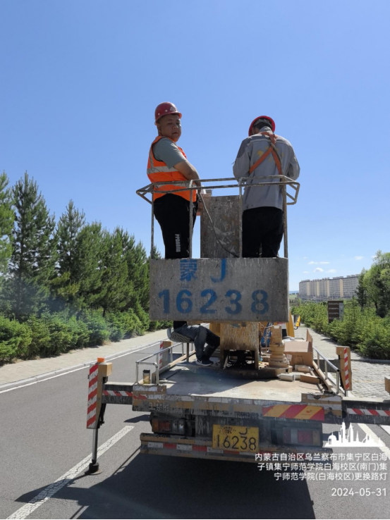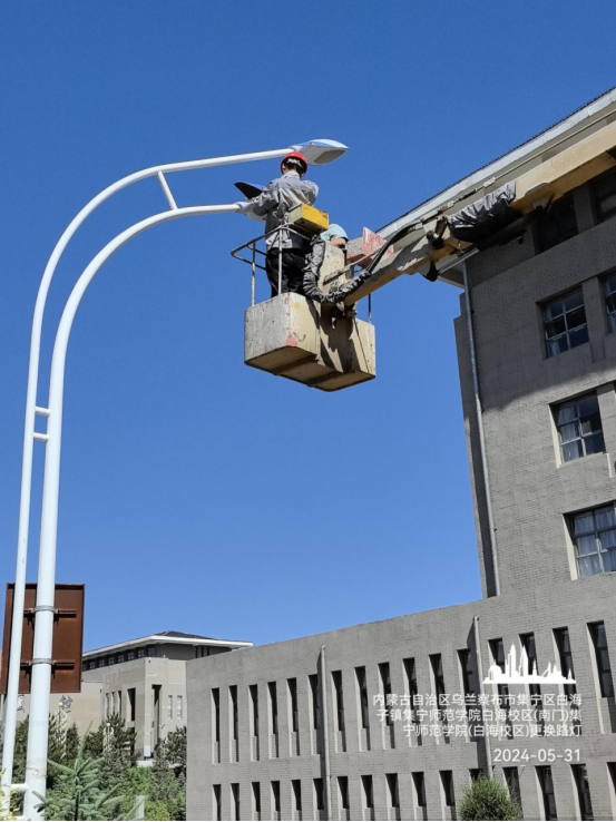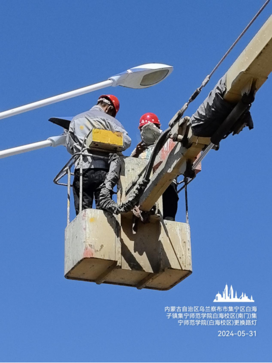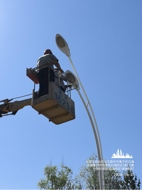 5月30-31日,后勤基建处保障服务中心工作人员维修路灯,方便师生夜间出行。
