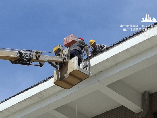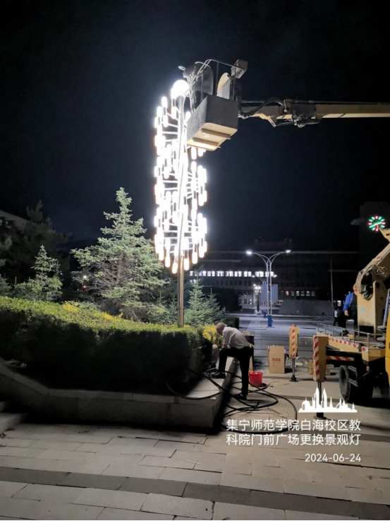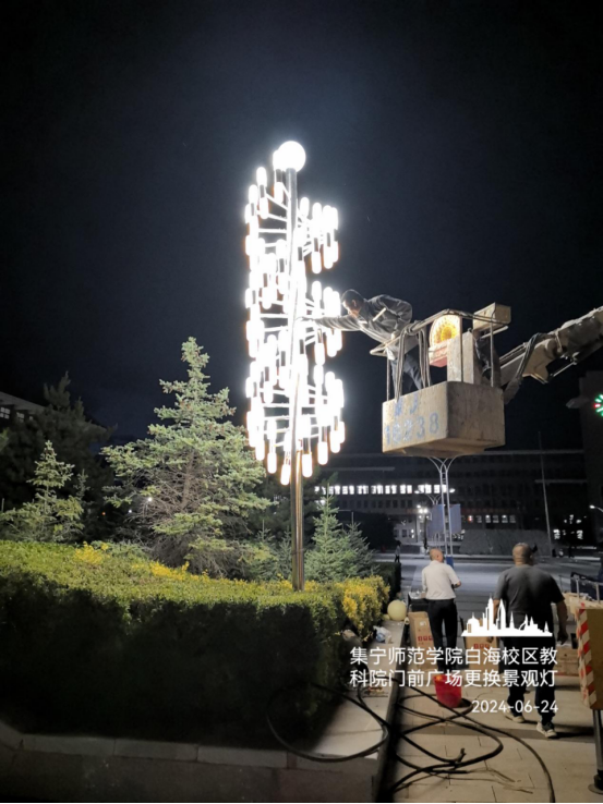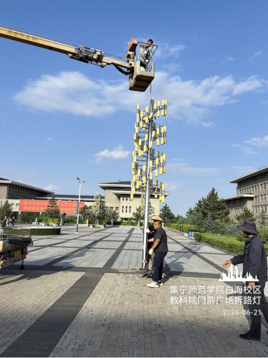 白海校区学生餐厅前广场拆除路灯安装投光灯