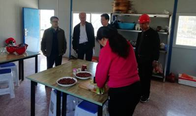 校长朱玉东,副校长李凤斌一行深入工地食堂,关心了解工人的生活情况,叮嘱要多关心爱护工人,切实保障工人的饮食卫生和健康。