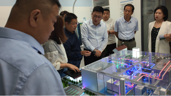 考察组一行实地参观了内蒙古环投环保技术有限公司建设的呼和浩特市利佰佳国际10万平米综合体“电模块”核心技术冷热联供项目以及内蒙古环投集团西楼“电模块”核心技术冷热联供项目的建设、运行情况以及了解使用单位的感受和满意度。