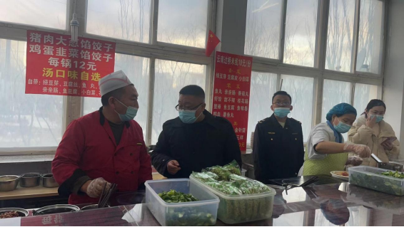 市场监督管理局副局长段海滨、集宁区餐饮科科长黄平一行人在后勤相关负责人陪同下对学生餐厅的食品安全、进货流程、索证索票、餐厨货物摆放、环境卫生、餐具消毒等情况进行了检查,并就检查中发现的问题提出整改意见。
